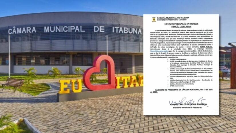 Câmara de Itabuna convoca audiência pública para debater implantação do IFBA