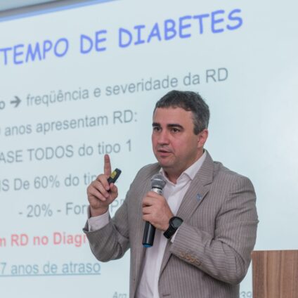 O oftalmologista cita que “outra doença, é a retinopatia diabética que é a maior causa de cegueira irreversível dos 20 aos 70 anos, com isto, a orientação é que todas as pessoas com Diabetes precisam fazer o exame da retina, isto é do fundo do olho, pelo menos uma vez ao ano, desde quando descobre o diabetes e durante toda a vida, isto é fundamental para a detecção precoce de suas complicações. A catarata é a maior causa de cegueira reversível do mundo, depois da falta de óculos, é uma enfermidade do envelhecimento, mas em casos mais incomuns, pode vir mais precocemente, e com uma cirurgia cada vez mais moderna e precisa, conseguimos devolver a visão e, mais recentemente, com o implante de lentes intraoculares mais modernas, é possível trazer a independência do uso de óculos. Uma outra importante causa de cegueira após os 50 anos é a Degeneração Macular Relacionada a Idade, doença também ligada ao envelhecimento, onde a parte central da retina, a mácula, é deteriorada nos privando da visão central da leitura e dos detalhes impedido a leitura, e diferente da catarata, esta pode ser irreversível, senão tratada precocemente”.